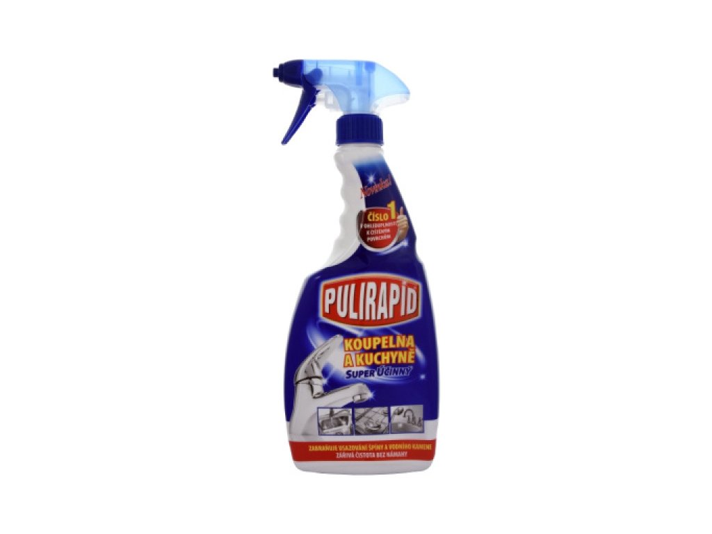 Pulirapid čistící prostředek důkladně vyčistí a  odstraňuje vodní kámen, zaschlé vodní kapky i skvrny od mýdla. Díky unikátnímu složení ochraňuje čištěné povrchy a navrací jim přirozený lesk. Usnadňuje  pravidelný úklid a zabraňuje opětovnému usazování špíny a  vodního kamene. Ideální na každodenní použití v koupelně i  kuchyni.