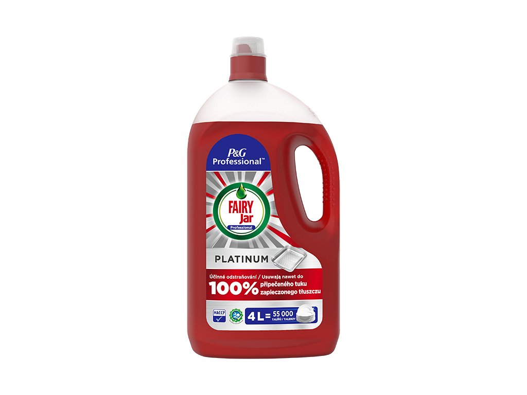Prostředek pro ruční mytí Jar Professional Platinum má nejlepší složení od Jaru s povrchově aktivními látkami odstraňující mastnotu. Je určen pro všechny typy nádobí od nerezu po porcelán. Efektivní odstraňuje mastnotu a zbytky potravin, zaschlé a připečené zbytky jídla z hrnců, pánví, příborů, talířů a ostatního kuchyňského vybavení i při mytí ve studené vodě. Nádobí je po umytí dokonale čisté a lesklé.