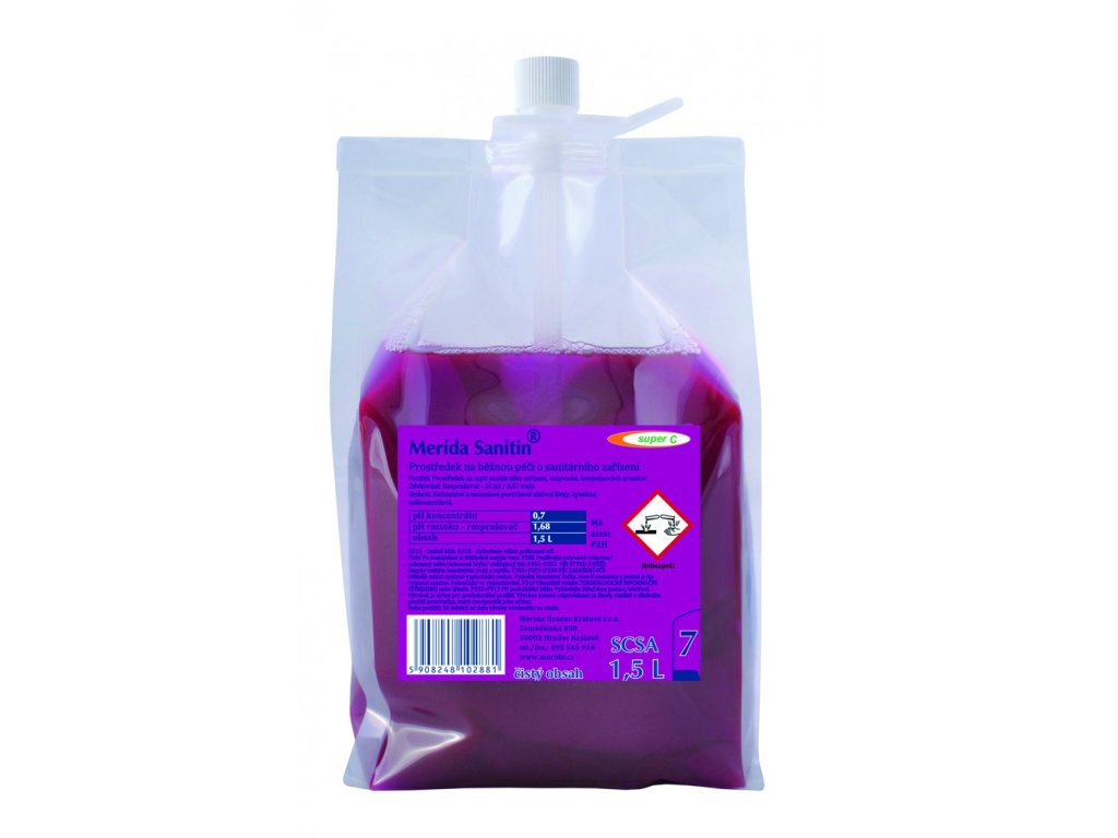 Prostředek na koupelny Merida NANO SANITIN Plus - antibakteriální,antistatický prostředek na běžné mytí povrchů a sanitárního zařízení s příjemnou vůní grapefruitů. Účinně odstraňuje rez, vodní kámen, mastnou špínu, vápenaté a mýdlové sedimenty usazující se na skle a glazurách. Zvláště se doporučuje pro mytí kování koupelen, skleněných sprchových koutů, koupelnových van, keramických a porcelánových povrchů. Na mytých místech zanechává příjemnou vůni. Moderní technologie nanočásteček křemíku umožňuje, že čištěné povrchy jsou chráněné před dalším usazováním nečistot a tím se snadněji udržuje jejich čistota.